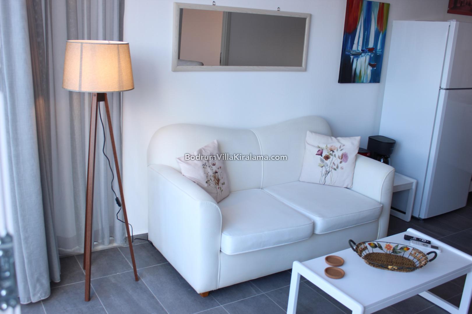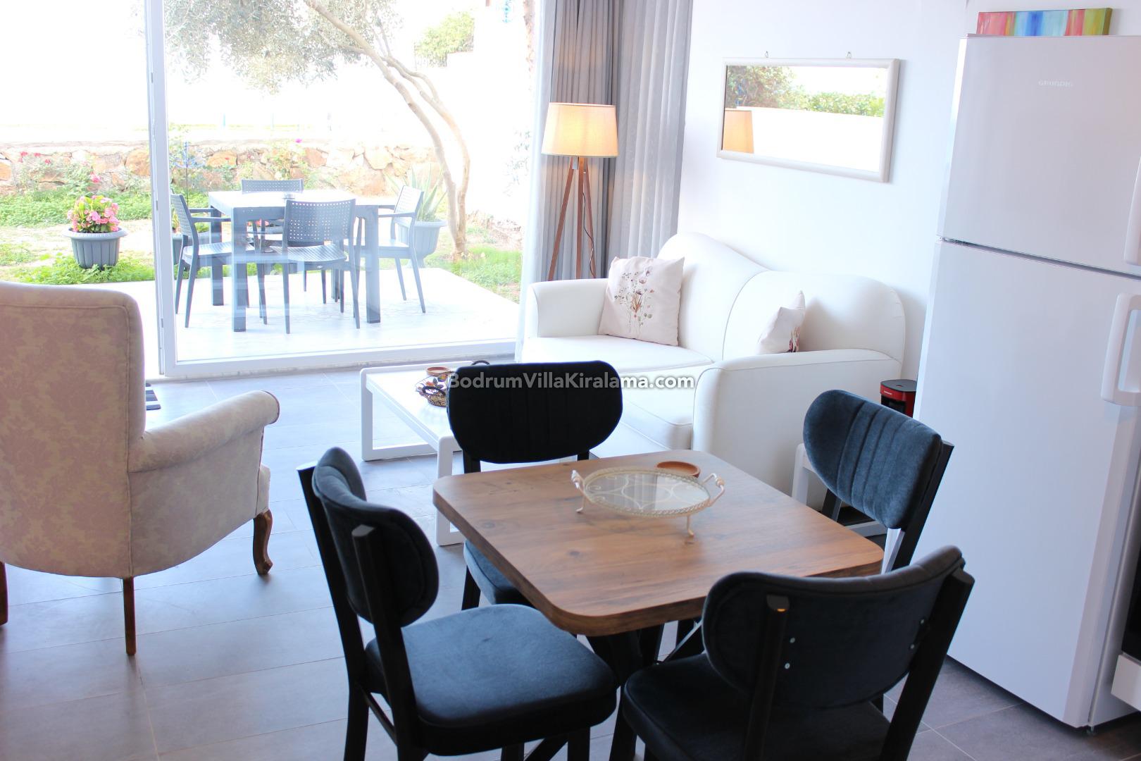 Daireye girişte sizi renkli çiçeklerle bezeli bahçe alanı ve bir veranda karşılamaktadır.Daire ; açık mutfak salon,bir yatak odası ve bir banyo şeklinde dizayn edilmiştir.Yine dairenin içerisinde bavullarınızı koyabileceğiniz küçük bir depo alanı da yer almaktadır.