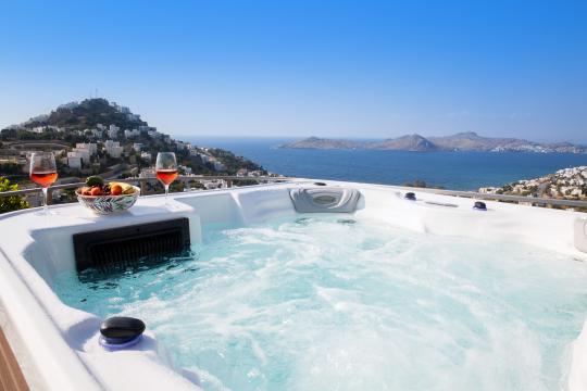 Villaya girişte, 2 araçlık özel otopark bulunmakta ve buradan bahçe ile havuz alanına geçiş sağlanmaktadır. Bahçede, harika deniz manzarasına sahip bir jakuzinin tadını çıkarabilirsiniz.
