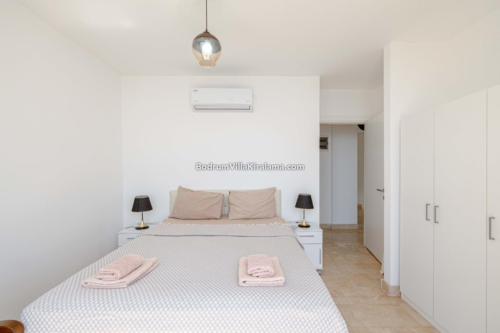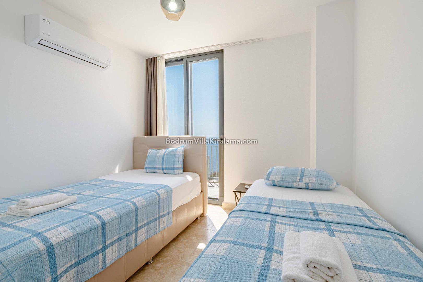 Dubleks olan villamızda ,toplam 4 yatak odası ( Bütün yatak odalarında çift kişilik yatak bulunmaktadır) ve 3 banyo bulunmaktadır.8 kişiye kadar konaklama yapılan villamız oldukça şık ve sade eşyalarla döşenmiştir.