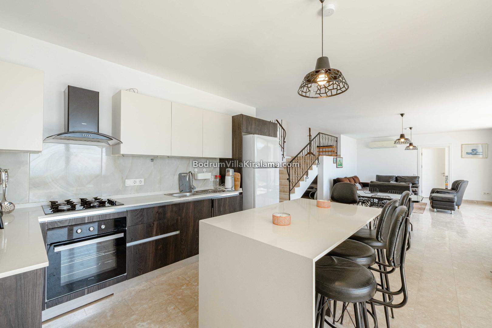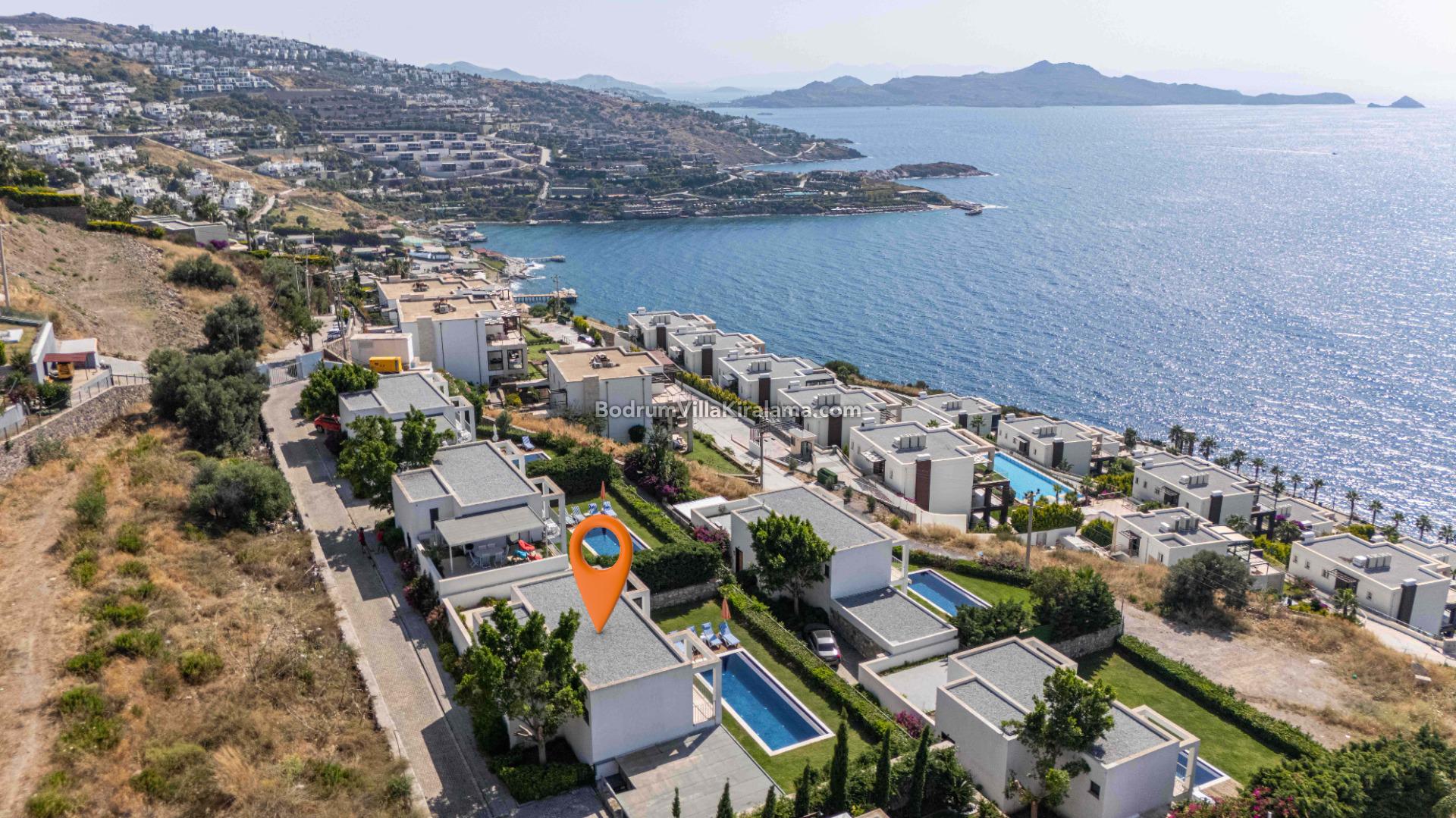 Yalıkavak Merkeze yaklaşık 8 km mesafesi bulunan villanın plaja mesafesi ise yaklaşık 1 km'dir.