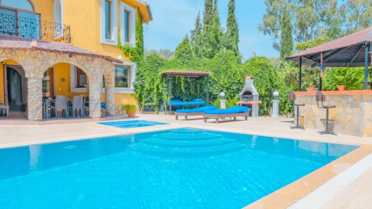 Villa Tropicana’nın 10x5 metre ölçülerindeki büyük havuzu, derinliği ise 1.80 ile 2.30 metre arasında değişmektedir. Ayrıca çocuk havuzu da bulunmakta olup, havuz başındaki bar ve kamelya, rahatlatıcı anlar geçirmeniz için mükemmel bir ortam sunar. Villa, bebek karyolası, portatif bebek yatağı ve mama sandalyesi gibi küçük misafirler için de tüm olanaklara sahiptir. Bahçesinde bir salıncağın bulunduğu bu villa, ailenizle keyifli vakit geçirmek için idealdir.
