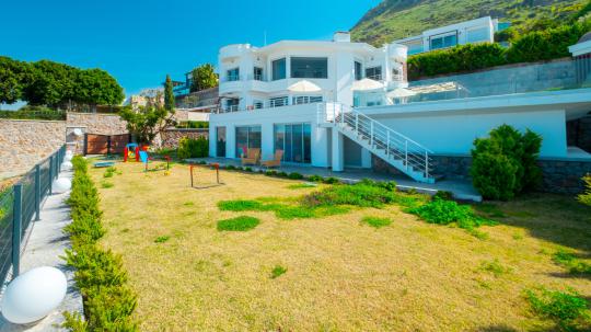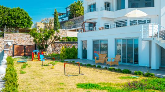 Giriş katında açık mutfak, salon ve havuz terasına çıkış bulunmaktadır. Üst katta biri ebeveyn banyolu olmak üzere 3 yatak odası, alt bahçe katında ise ikinci bir açık mutfak, salon, ebeveyn banyolu bir çift kişilik oda ve iki tek kişilik yataktan oluşan ek yatak odası yer almaktadır. Tüm yatak odalarından etkileyici deniz manzarası eşliğinde güne başlayabilirsiniz.