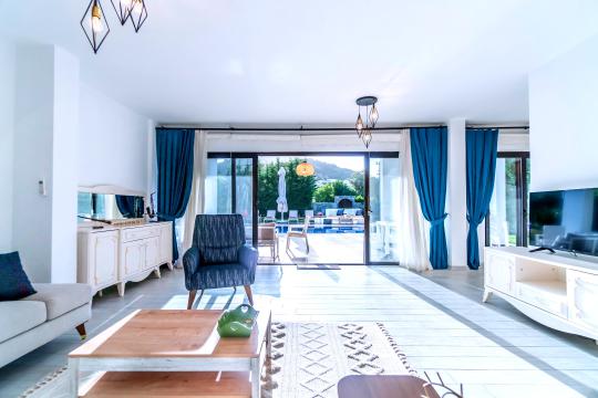 Üst katta ise üçü de ebeveyn banyolu üç yatak odası yer almakta ve bu odalardan ikisi havuz manzarasına sahiptir. Ayrıca, geniş bir balkona açılan odalar da mevcuttur. Villa, açılır kanepe ile toplamda 9 kişiye kadar konaklama kapasitesine sahiptir. Düşük sezonda minimum 3 gece, yüksek sezonda ise minimum 5 gece kiralama yapılabilmektedir. Elektrik, su ücreti ve haftada bir temizlik ücreti fiyatlara dahildir. Villa River, Wi-Fi ve 3 araçlık otopark alanı ile donatılmıştır.