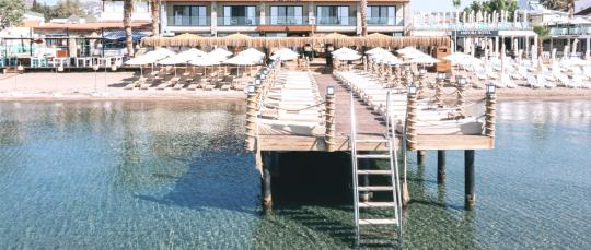 Bodrum Ortakent'te, denize sadece 100 metre mesafede ve özel plajı bulunan dairelerimiz, toplamda 7 blok ve 14 daireden oluşan güvenlikli bir site içerisinde yer alıyor. Sitenin ortak havuzu bulunmakta olup, anlaşmalı olduğu ücretsiz plaj sadece 100 metre yürüyüş mesafesindedir. Ayrıca, yaklaşık 1 km uzaklıkta yer alan elit bir otelin plajı da misafirlerimize ücretsiz sunulmakta, otelin restoranından ise %10 indirimli yararlanabilirsiniz.