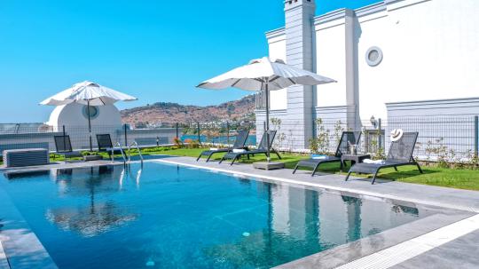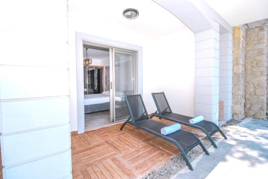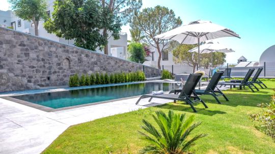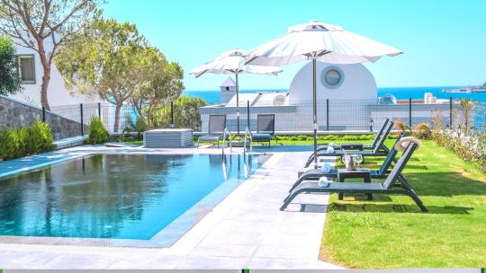 Sitede toplam 4 adet havuzun yanı sıra, kendine ait özel denize girme alanı da mevcuttur. Alt katlar havuz katı olup bahçeden deniz manzaralı, üst katlar ise tamamen deniz manzaralıdır. Tüm bahçelerde mangal bulunmakta olup, ayrıca evlerde Wi-Fi hizmeti de vardır. Arzu ederseniz dubleksi, sadece 3+1 bahçe katını veya tripleks olarak kiralama yapabilirsiniz.